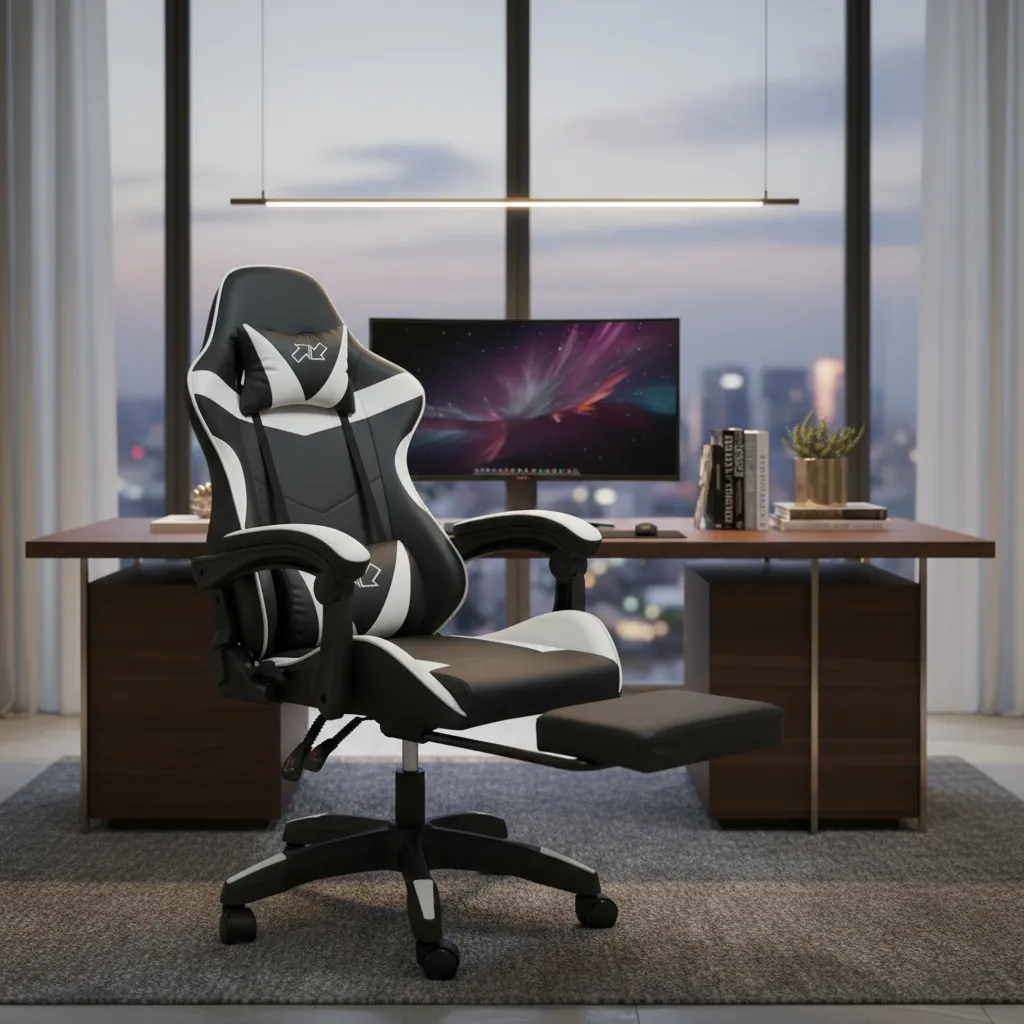Silla Gamer Ergonómica para Escritorio – Negro y Blanco